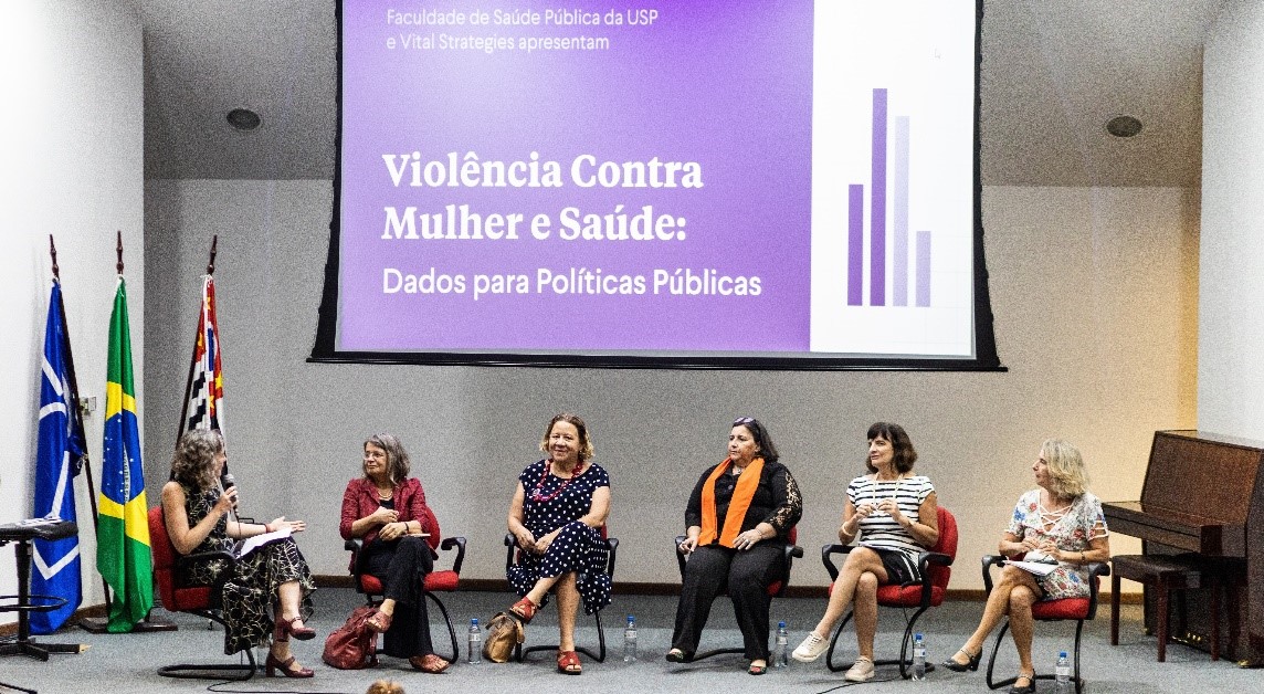 Debate sobre a produção e uso de dados para o enfrentamento da violência contra mulheres e meninas pela perspectiva da saúde pública em evento realizado pela Vital Strategies, Universidade de São Paulo (USP) e parceiros.